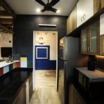 Concept: Small space masters the change in maximum use as an entertainment friendly space which blends the materials with energing colors and useful industrial elements. The detailed surfaces are design elements and added layers that can be removed and replaced back to look the space to its original conditions. The Apartment is fitted with wood, bricks, concrete, white and beige finishes and industrial details with grey and black elements.The floor of the whole apartment is in oak wood in white and beige tone.The bar counter connects the kitchen and living area. Dinning table is a part of the panelling can be opened as per the requirement to maximize the space.The use of dark and light colours gives the coziness in the bedroom.