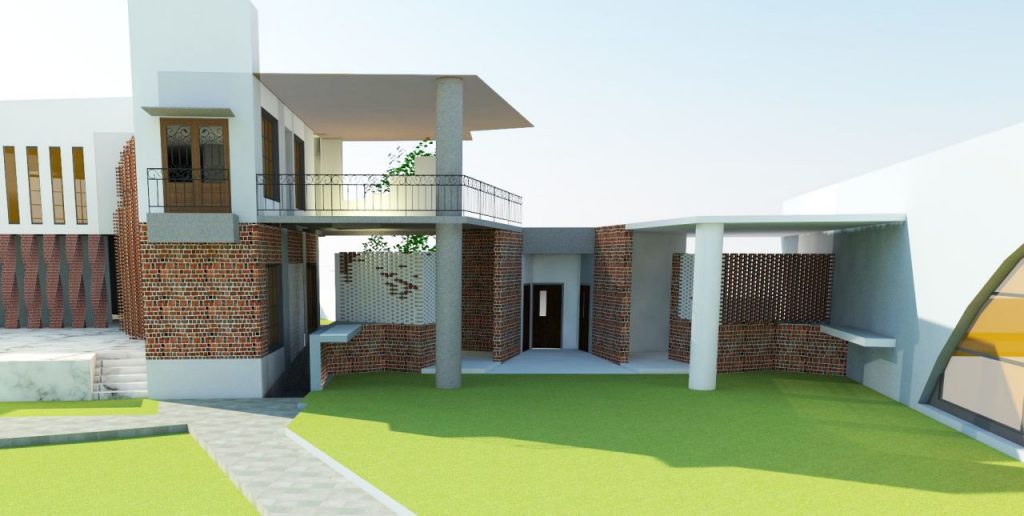Build a Wedding Hall with a Capacity to hold 1200 people in open and and 800 people when covered. Mandatory requirements include: open sitting area, rehearsal and dance room, lodge reception and lodging rooms for stay.